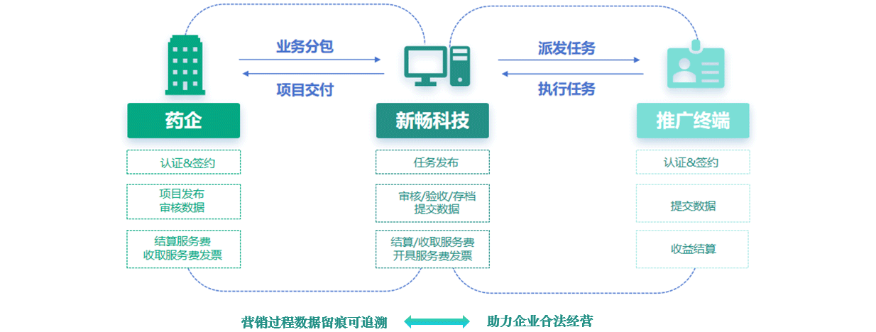 新暢平臺以“五流合一"作為標準,通過提供SAAS全鏈路管理體系,打造出完整,規范,標準化的營銷合規流程,為藥械企業還原真實業務場景構建合規的營銷體系,實現企業的推銷分離,并最終助力企業實現業務真實穿透的全鏈合規轉型管理